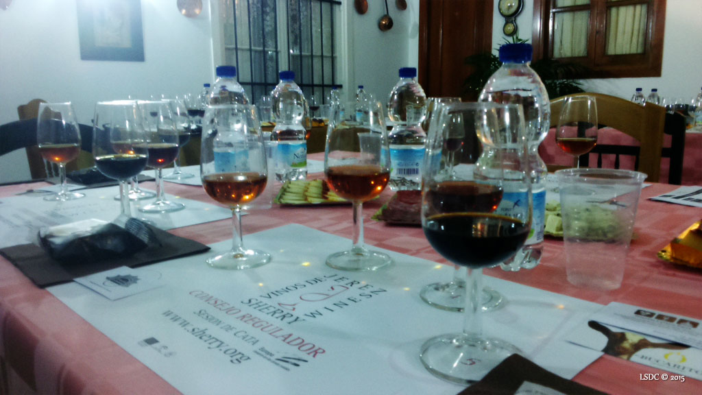 Humbert, maridándolo al mismo tiempo con productos del Marco de Jerez. Hasta cuatro quesos – todos son impresionantes, pero a destacar el queso azul pionero en Andalucía- y una gran representación de embutidos, se pudo degustar todo procedente de la marca El Bucarito (Rota). Para pasar más tarde a la repostería del tradicional Tocino de Cielo de Jerez – aquí volvemos a reivindicar la marca de este producto de nuestra tierra- y trufas de chocolate de la Pastelería Jesús (C/Bizcocheros).