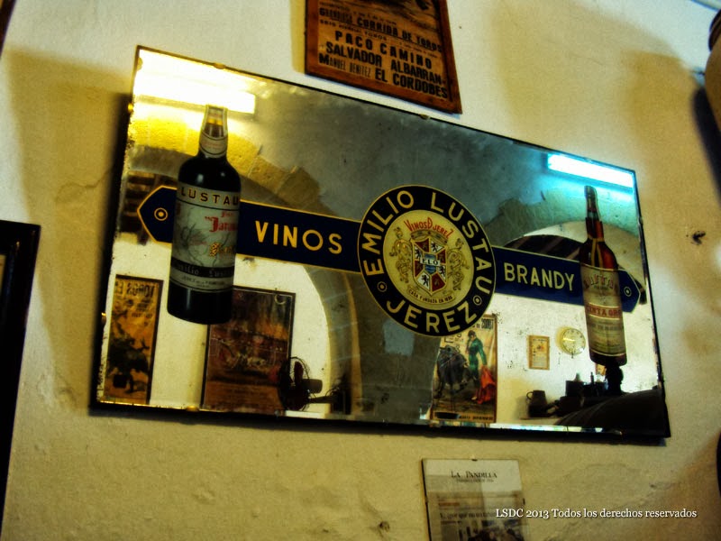 «Mas tarde de esos mismos bocoyes se sacaban las jarras bodegueras para distribuirla en los dos depósitos empotrados en la pared tras la barra”. Nos tomamos un buchito de fino y continua la referencia. “De ahí se distribuía por unos serpentines que pasaban por un ingenioso método de enfriamiento, donde los parroquianos consumían el Valdepeñas bien fresquito” nos narra Lete, mas añade “eso era una de las razones por la que destacaba la calidad de los vinos tintos de la Pandilla, también se embotellaban allí mismo con la etiqueta del Tabanco para distribuirlas por todo Jerez”.